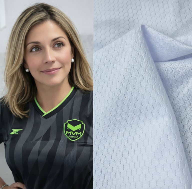 Utilizamos tela de microfibra de secado rápido, 100% poliéster, que garantiza durabilidad, resistencia y comodidad. Tejidos deportivos de alto rendimiento y sublimación profesional.